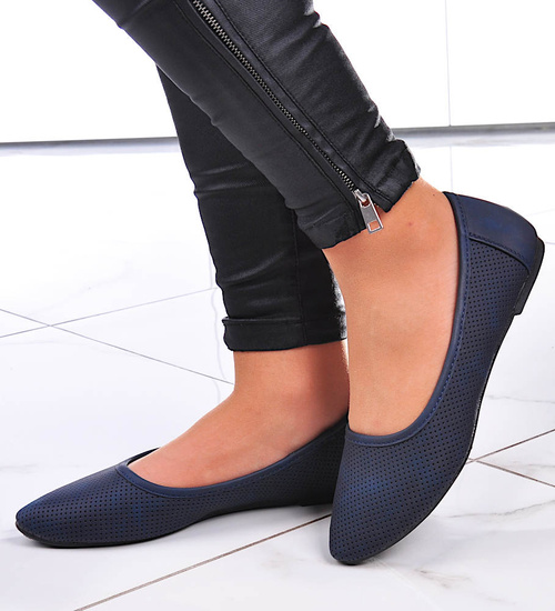 Ażurowe granatowe balerinki damskie /A8-3 13080 T198/