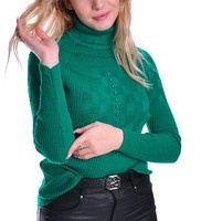 - Śliczny i wygodny damski golf wykonany z miękkiego, przyjemnego w dotyku materiału w kolorze ciemno zielonym.