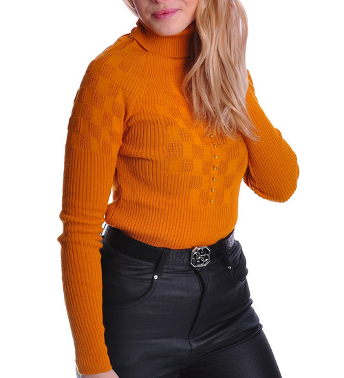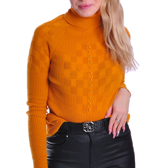 Musztardowy damski golf z guziczkami /A4-1 UB379 T197/