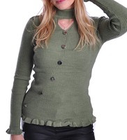 Śliczny niebieski damski golf z guzikami i wycięciem /D7-1 UB386 T18-5/