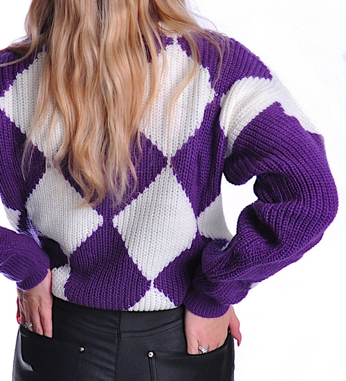 Gruby fioletowo biały sweter damski /A6-1 UB432 U1391/