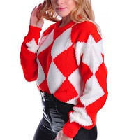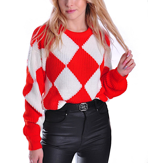Gruby rudo biały sweter damski /A6-1 UB439 U1391/