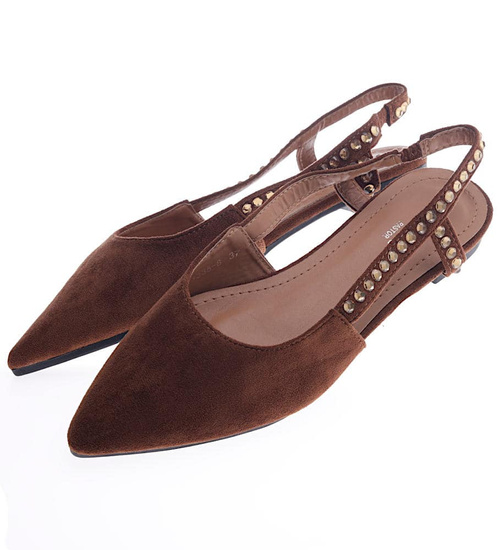 Brązowe balerinki z otwartymi piętami /C1-2 13124 S9/