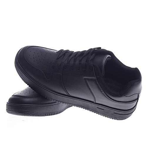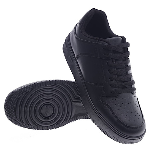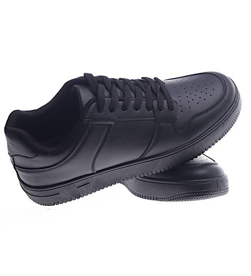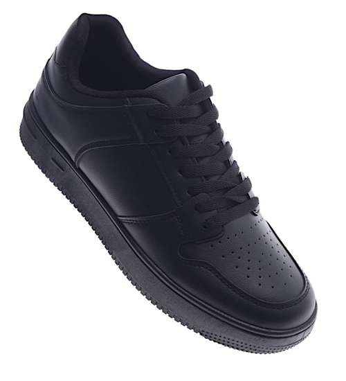 - Sznurowane męskie trampki w czarnym kolorze- ciesz się komfortem podczas codziennych spacerów.