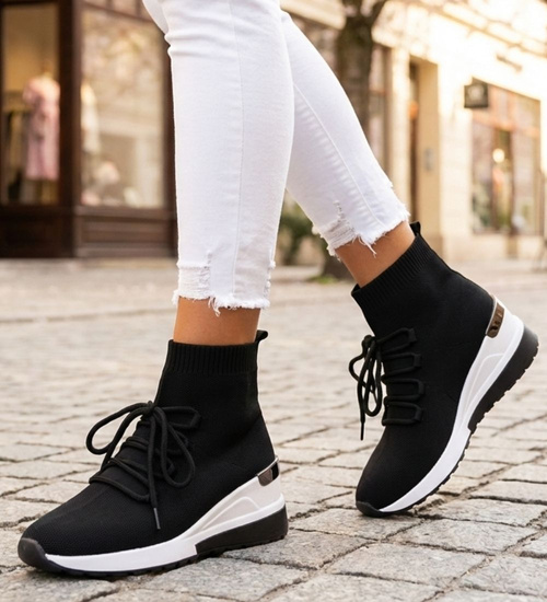Czarne trampki sneakersy na koturnie /D7-3 13152 T3/