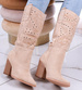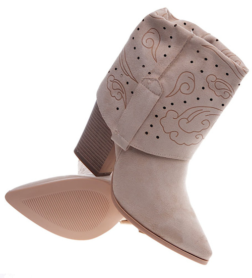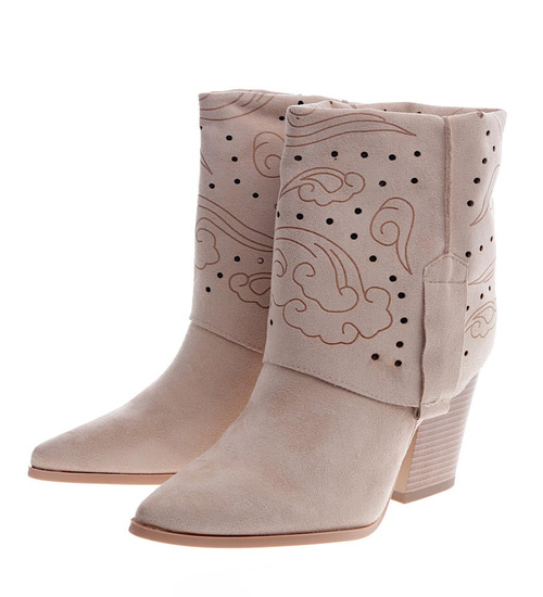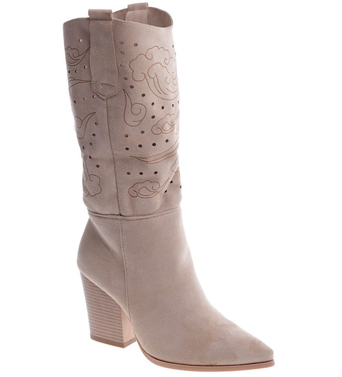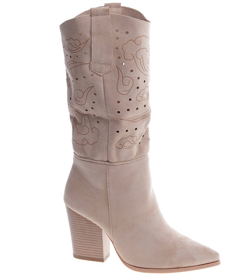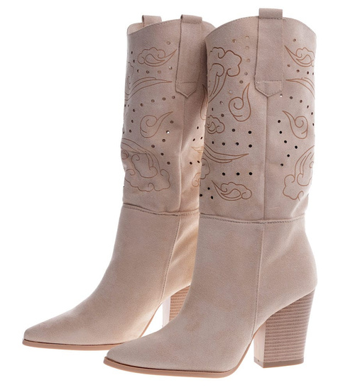 Beżowe kozaki muszkieterki na płaskim obcasie /E1-2 18602 G366/