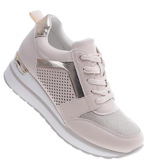 Ażurowe beżowe sneakersy na niskim koturnie /D9-2 13231 T592/