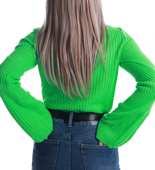 - Przepiękna limonkowa damska bluzka z szerokimi rękawami dzwonami.