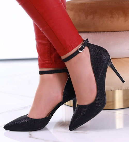 - Eleganckie damskie czółenka szpilki wykonane z skóry ekologicznej z brokatową powłoką.