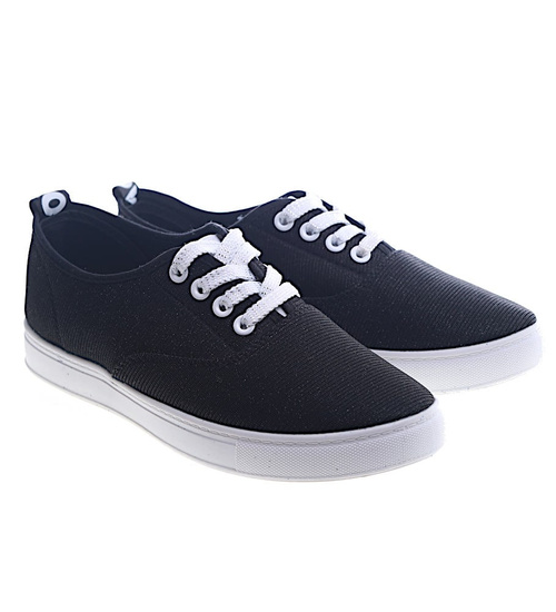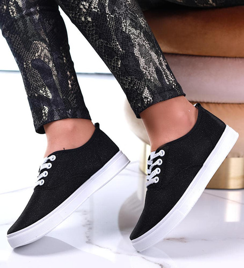 Sznurowane damskie trampki czarne /F1-3 13322 T192/