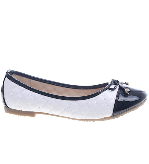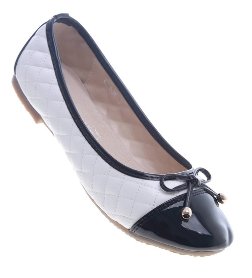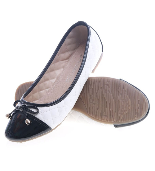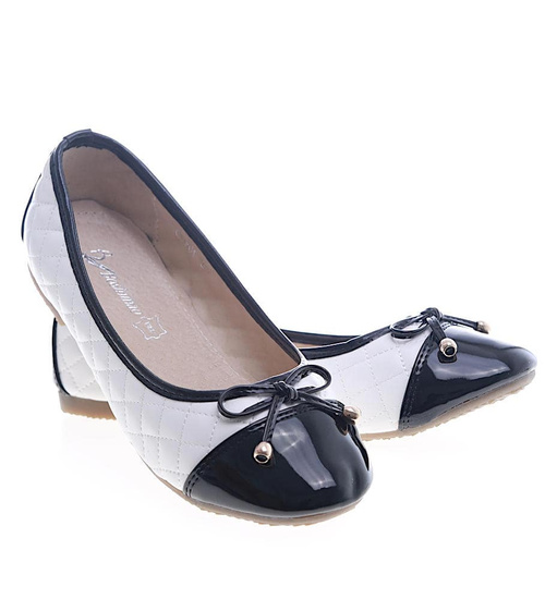Biało czarne balerinki z kokardką /F2-2 13345 S192/