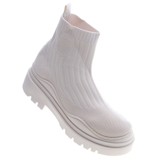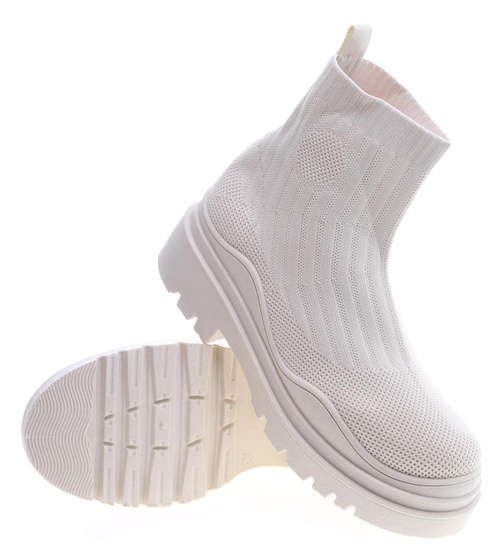 Beżowe trampki damskie na platformie /C1-2 13377 T292/