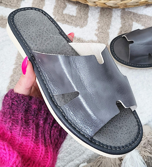 Skórzane domowe klapki kapcie szare /A2-1 13382 S194/