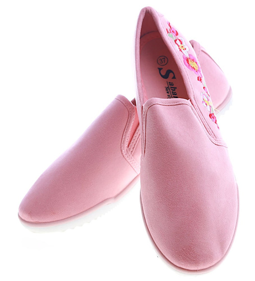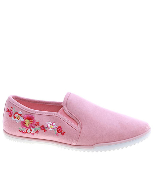 Różowe tenisówki z kwiatowym haftem /F5-2 13410 T149/