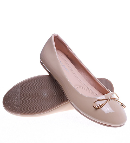 Beżowe klasyczne balerinki z kokardką /E4-3 13439 T190/