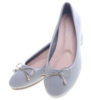 - Prezentowane szare balerinki zostały ozdobione kokardką.
