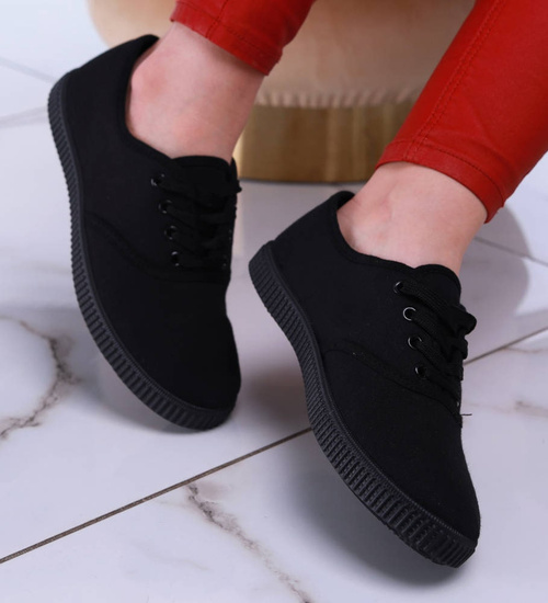 - Sznurowane klasyczne tenisówki damskie w czarnym kolorze.