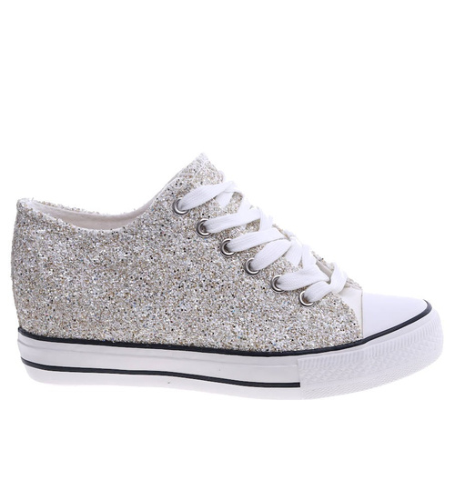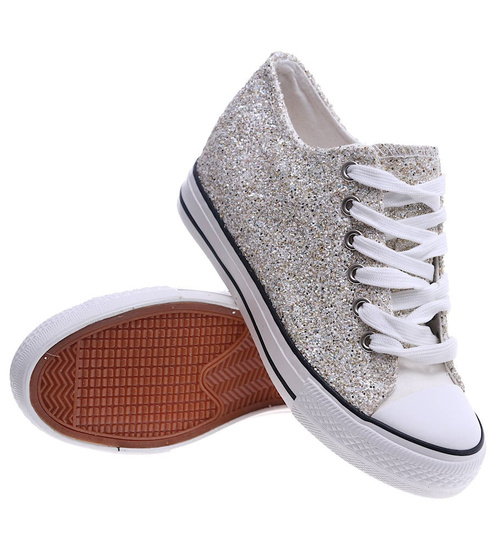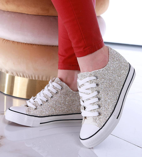 - Wiązanew trampki w kolorze złotym na niskim koturnie to wyjątkowe obuwie, które pozwoli Ci wyróżnić się z tłumu i dodać swojemu outfitowi niepowtarzalnego charakteru.