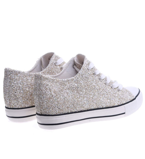 Złote trampki sneakersy na koturnie /F2-2 13490 T231/