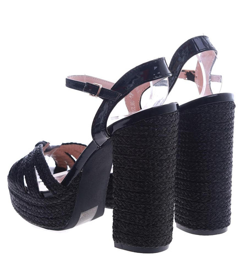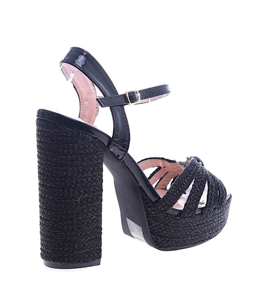 Wyszczuplające czarne sandały na obcasie i platformie /D9-2 13533 T299/