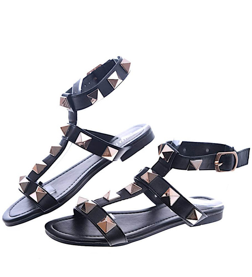 Czarne płaskie sandały damskie z piramidkami /G4-3 13494 T191/