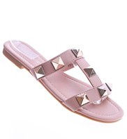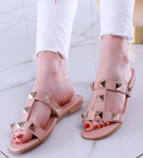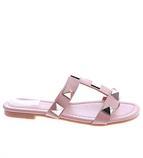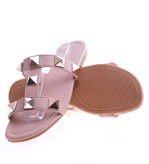 Różowe płaskie klapki damskie z piramidkami /C7-1 13555 T191/