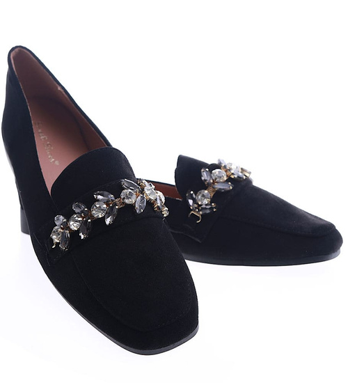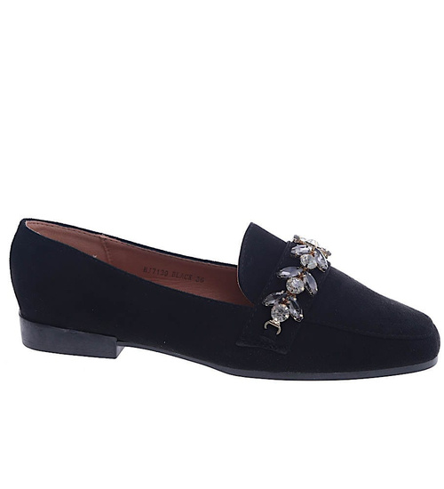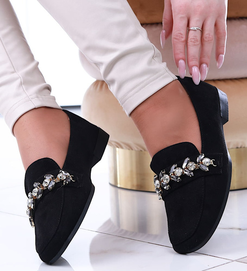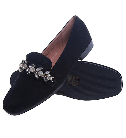 Czarne balerinki lordsy z kamieniami /A3-2 13523 T463/