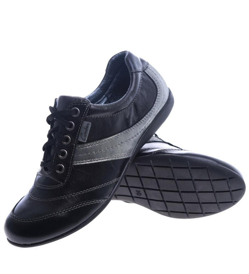 Sznurowane czarne trampki ze skóry naturalnej /D7-2 SR15/