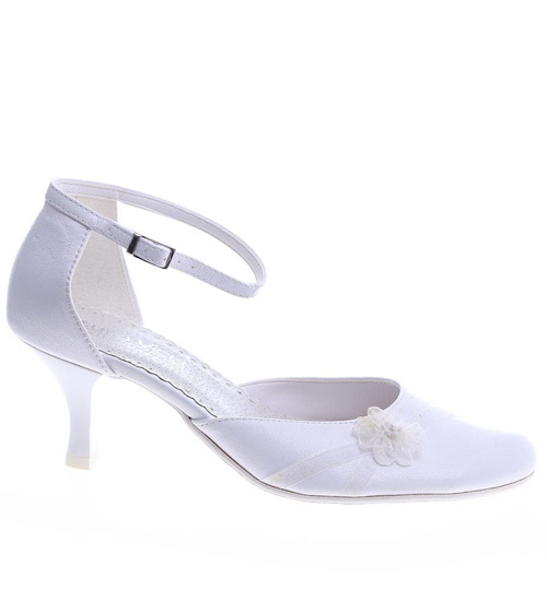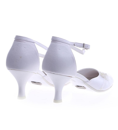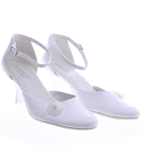 Skórzane białe czółenka szpilki z paseczkiem /H SR37/