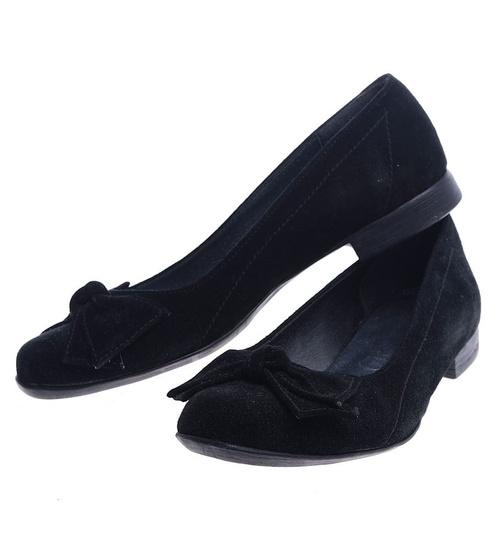 Zamszowe czarne balerinki ze skóry naturalnej G12-2 SR164