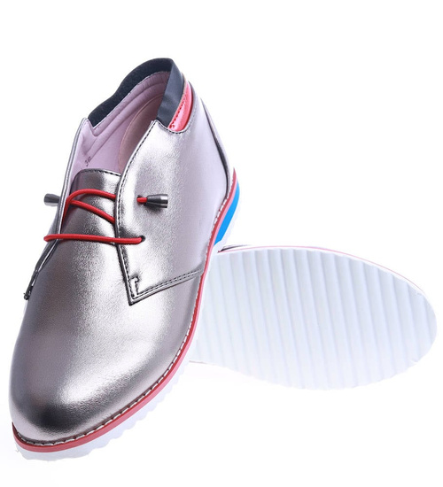 • Prezentowane srebrne półbuty są idealne na wiosnę i latem, kiedy to można eksperymentować z kolorami i dodatkami.
