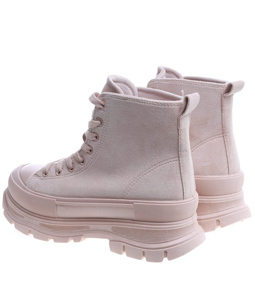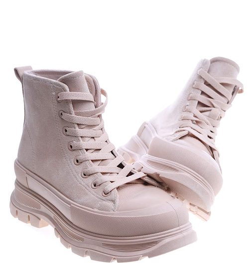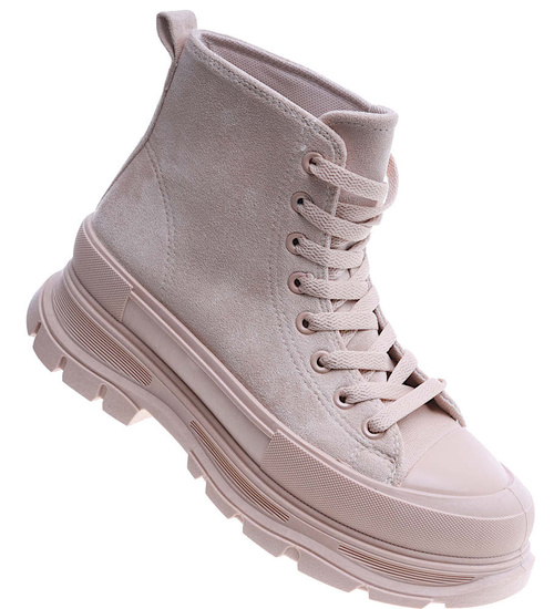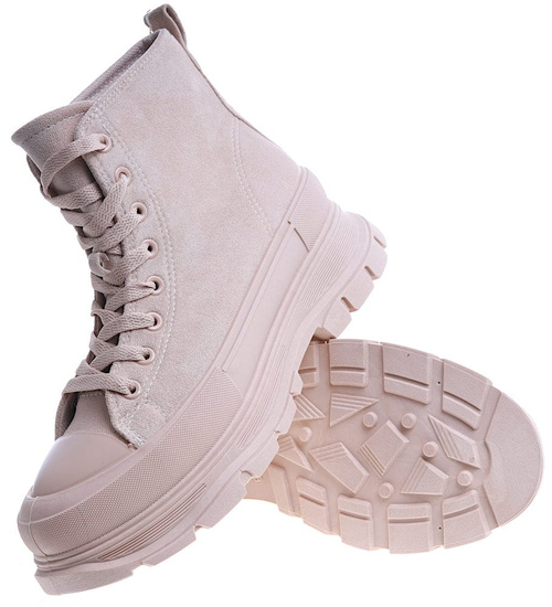 Beżowe wysokie damskie trampki na platformie /E10-2 13691 T267/