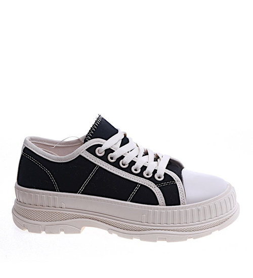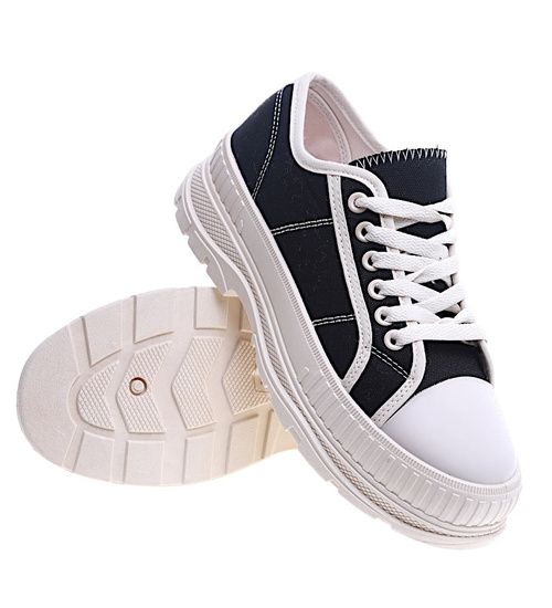 - Te czarne trampki doskonale sprawdzą się w sezonie wiosenno-letnim, kiedy to szukamy butów, które będą wygodne.
