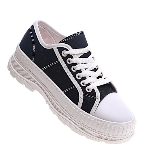- Trampki damskie w czarnym kolorze z dodatkiem beżu, to idealny wybór dla kobiet ceniących sobie wygodę i sportowy styl.