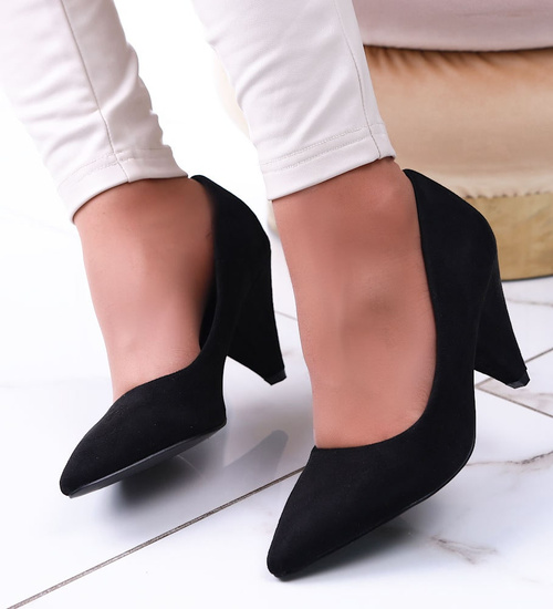 Czarne czółenka na niskim obcasie /F2-3 13668 T242/