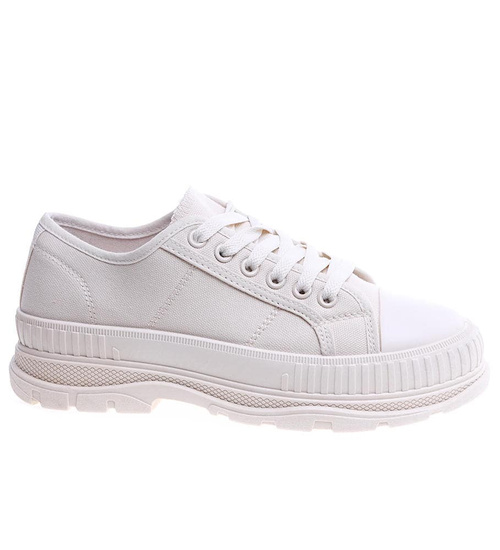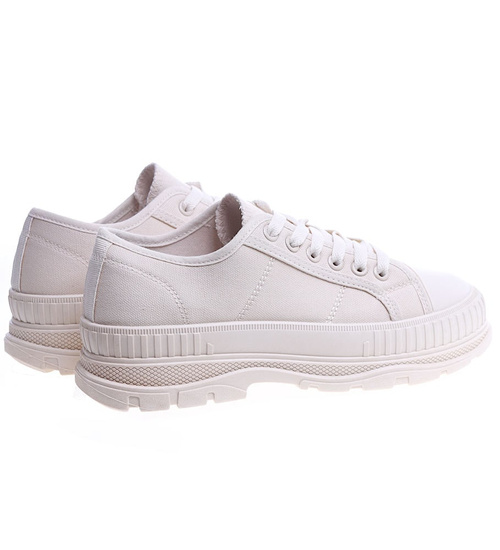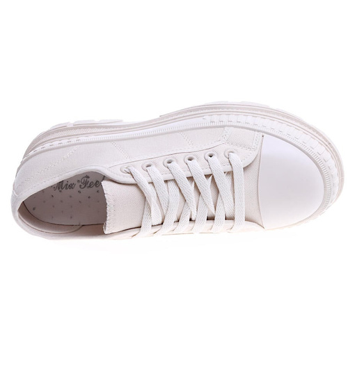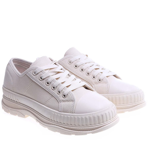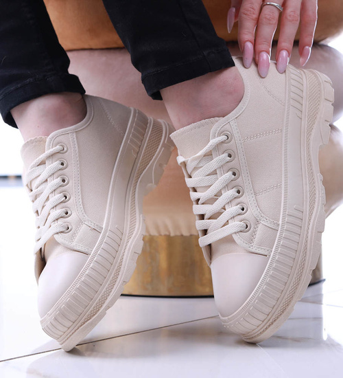 Beżowe niskie damskie trampki na platformie /G6-3 13688 T267/