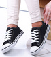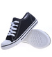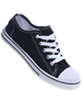 - Klasyczne damskie trampki wykonane z miękkiej tkaniny w czarnym kolorze.