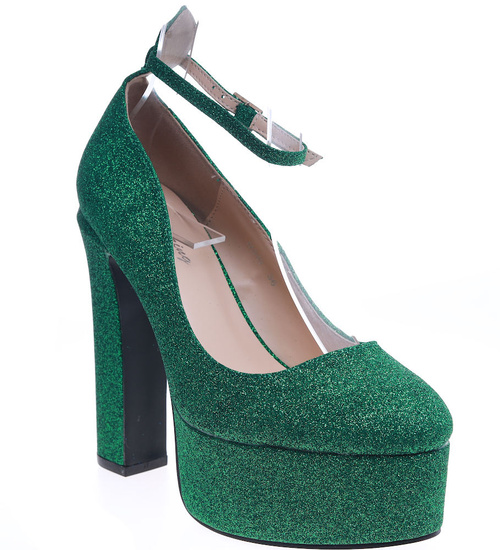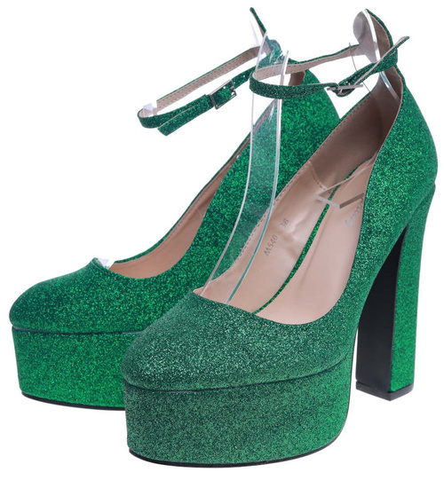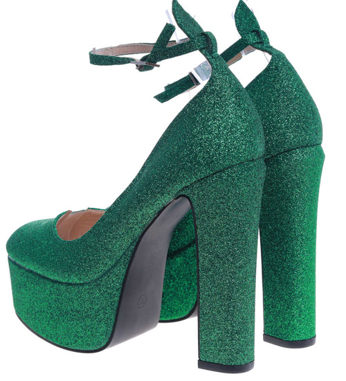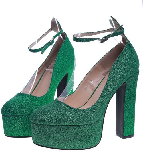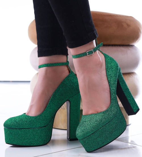 Wysokie zielone czółenka na słupku i platformie /G5-2 13699 T343/