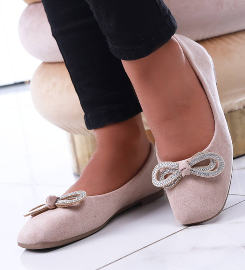 - Śliczne dziewczece balerinki wykonane zamszowej skórki ekologicznej w kolorze khaki.