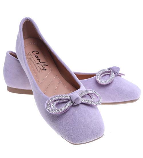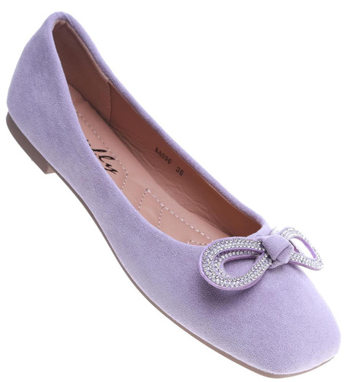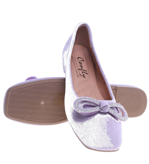 Wiosenne balerinki z błyszczącą kokardką Fioletowe /F8-2 13713 T213/