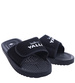 - Wodoodporne męskie klapki wykonane z gumowo piankowego materiału w kolorze czarnym.