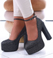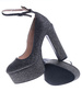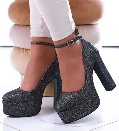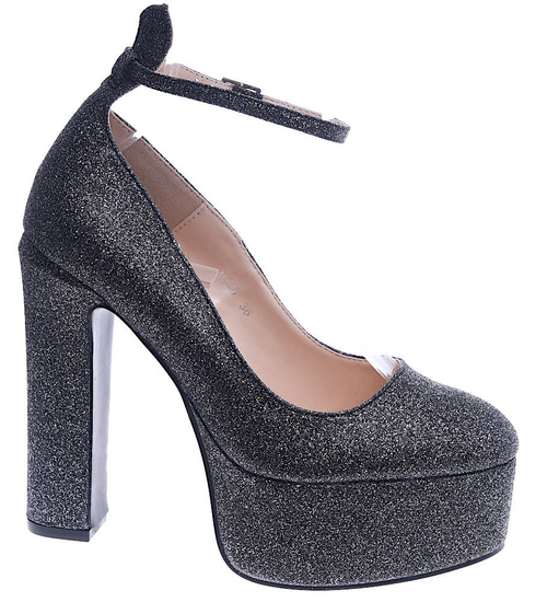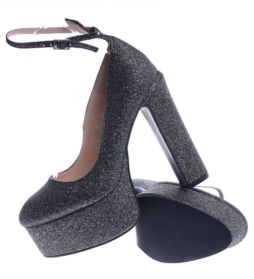 Wysokie brokatowe czarne czółenka na słupku /C3-2 13701A T343/