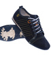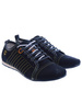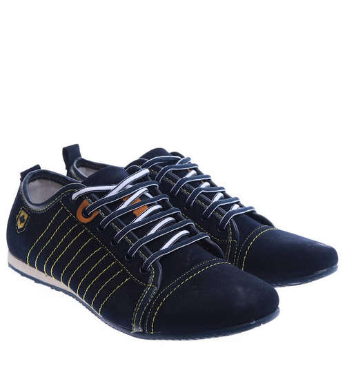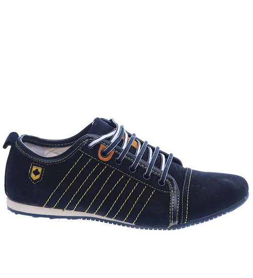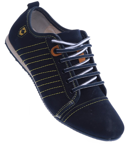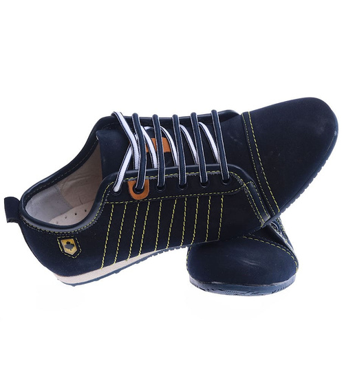 - Sznurowane chłopięce półbuty wykonane z zamszowej skórki ekologicznej w kolorze granatowym.