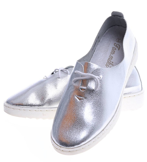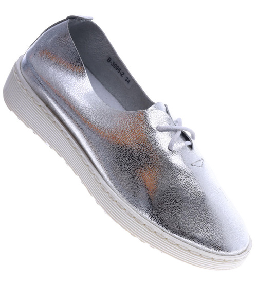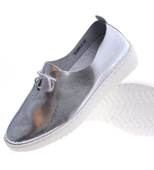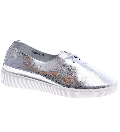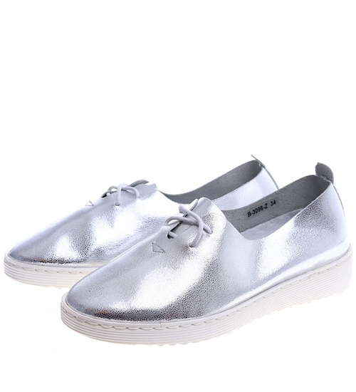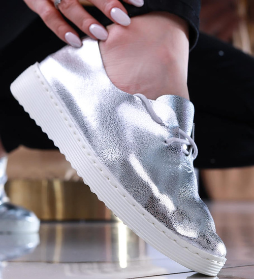 Srebrne wiązane trampki /A4-2 13809 T142/