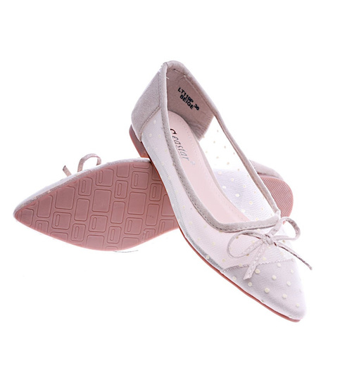 - Modne damskie balerinki wykonane z przewiewnego, siatecznowego materiału.