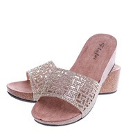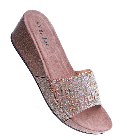 Złote klapki damskie na koturnie /B3-3 13824 T199/