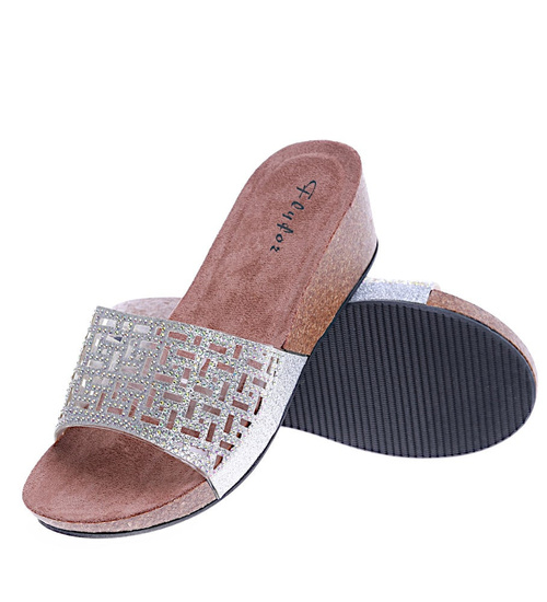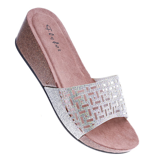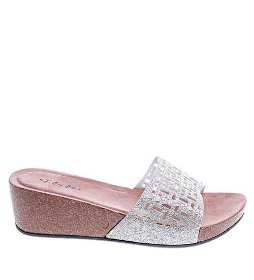 Srebrne klapki damskie na koturnie /A2-3 13825 T199/
