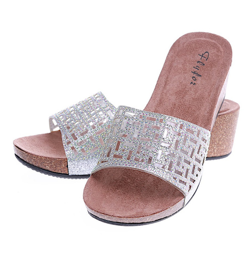 - Srebrne damskie klapki na koturnie to idealny wybór dla kobiet, które cenią sobie wygodę i komfort w czasie ciepłych, letnich dni.