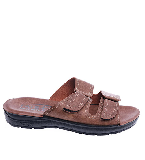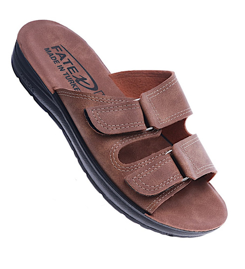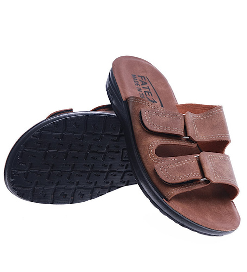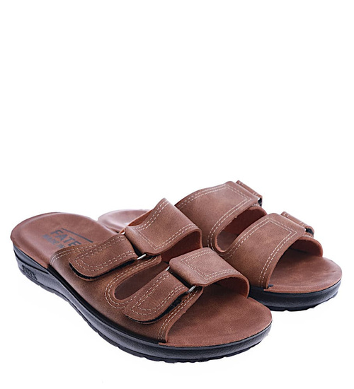 Męskie domowe kapcie ze skóry zamszowej Brązowe /F6-1 7929 S195/