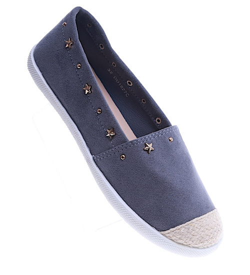 - Wiosenne dziewczęce espadryle wykonane z j skórki ekologicznej zamszowej w kolorze granatowym.